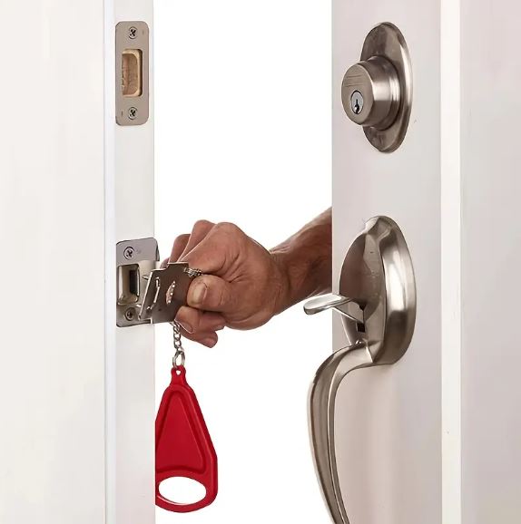 Mantén tus pertenencias seguras dondequiera que vayas con esta cerradura portátil. Perfecta para viajes, habitaciones de hotel, apartamentos o cualquier puerta estándar, te permite bloquear y proteger rápidamente tu espacio, evitando robos y brindándote tranquilidad al instante.